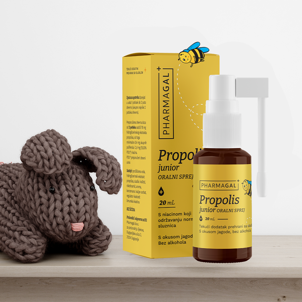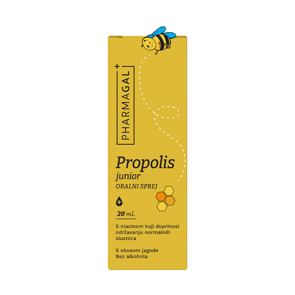 Tekući dodatak prehrani s propolisom i niacinom. Niacin doprinosi održavanju normalnih sluznica. Bez šećera, sa sladilom, okusa jagode.